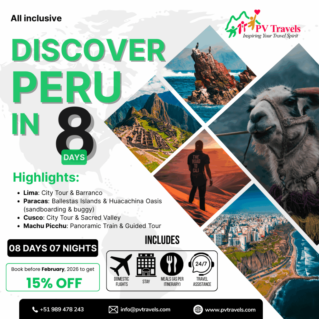 📍 Highlights: Lima – Paracas – Huacachina – Ballestas Islands – Machu Picchu – Cusco